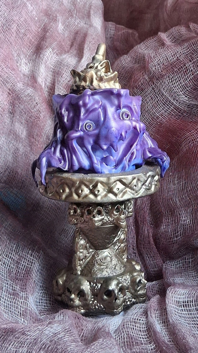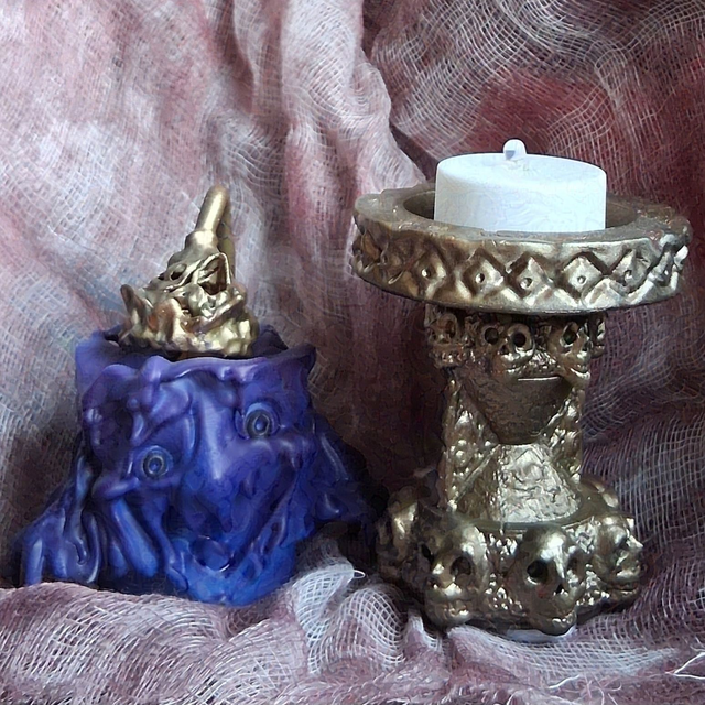 Im Set enthalten sind ein Sockel, eine beseelte Kerze Trouble und ein elektrisches Teelicht.